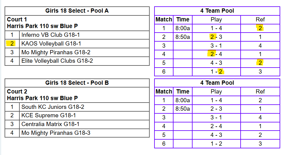 18u Winter Heat Tournament Schedule